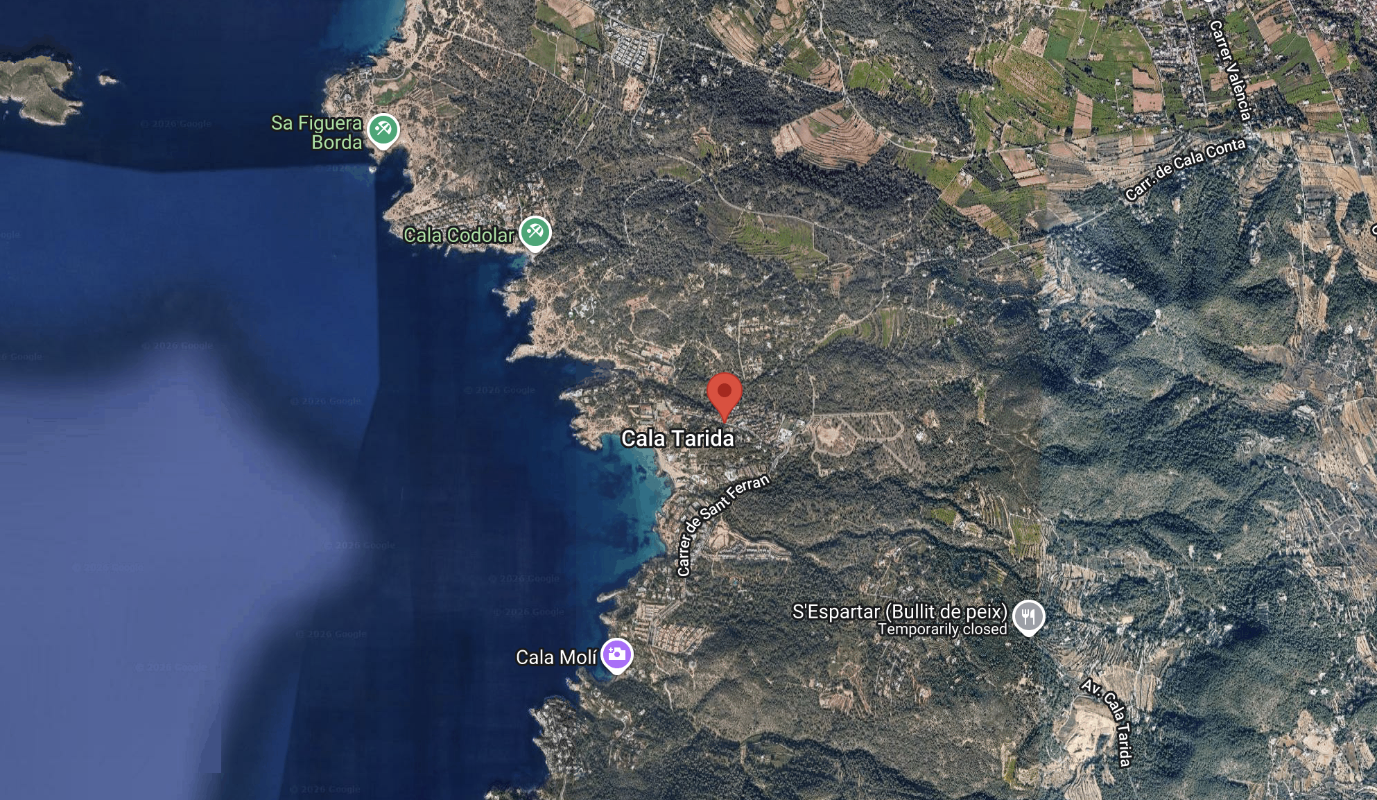 Cala Vadella: 8 mins drive